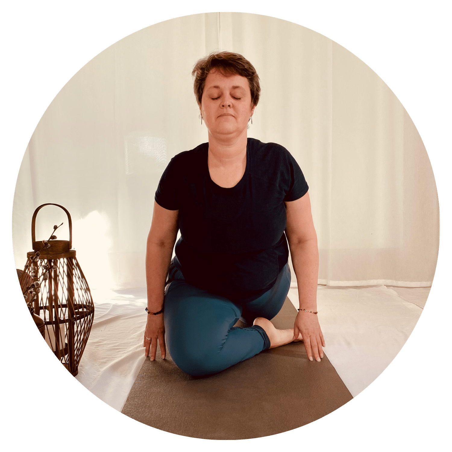 Hver time begynder med at lande – siddende eller liggende – ofte med afbalancerende åndedrætsøvelser, der bringer ro til nervesystemet og nærværet til nuet.